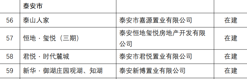 9月18日,山东省住房和城乡建设厅发布高品质住宅试点项目(第三批)名单,泰安市泰山人家,恒地·玺悦(三期),君悦·时代麓城,新华·御湖庄园观湖、知湖4个在建房地产项目成功入选,此次全省共有 102 个项目纳入第三批试点。